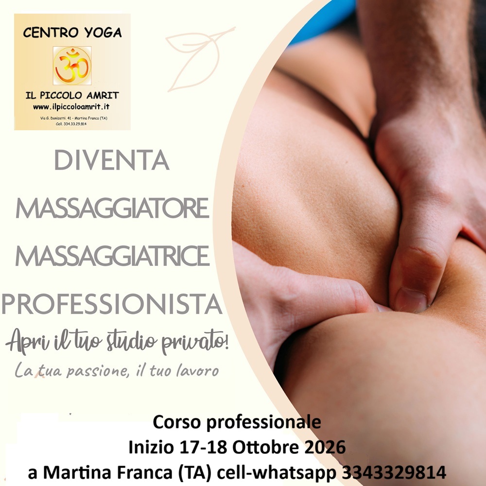 più ancestrali, fino alla consapevolezza del Sé. Centro Yoga Il Piccolo Amrit Associazione Culturale Via G. Donizetti, 41 74015 Martina Franca (TA) Pec : roberto.boschini@postecert.it C.F.02682000738 Attività professionale di cui la Legge 14 gennaio 2013, N° 4 Informativa sulla Privacy: Il nostro